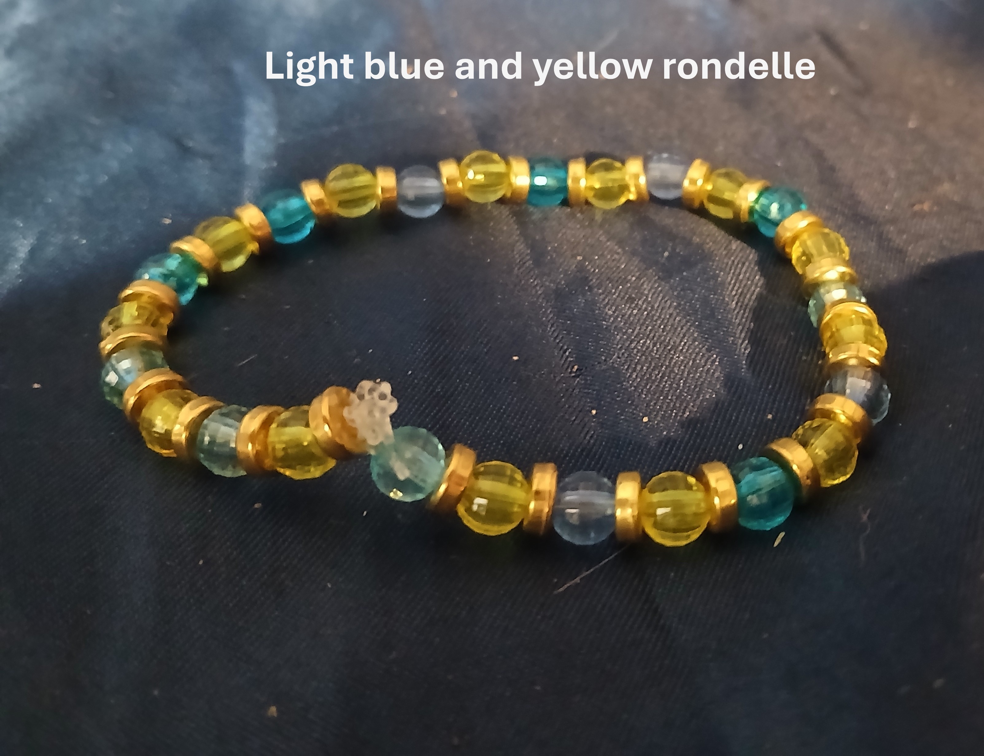 Red white and green beads surrounding xmas light charms and large jingle bells