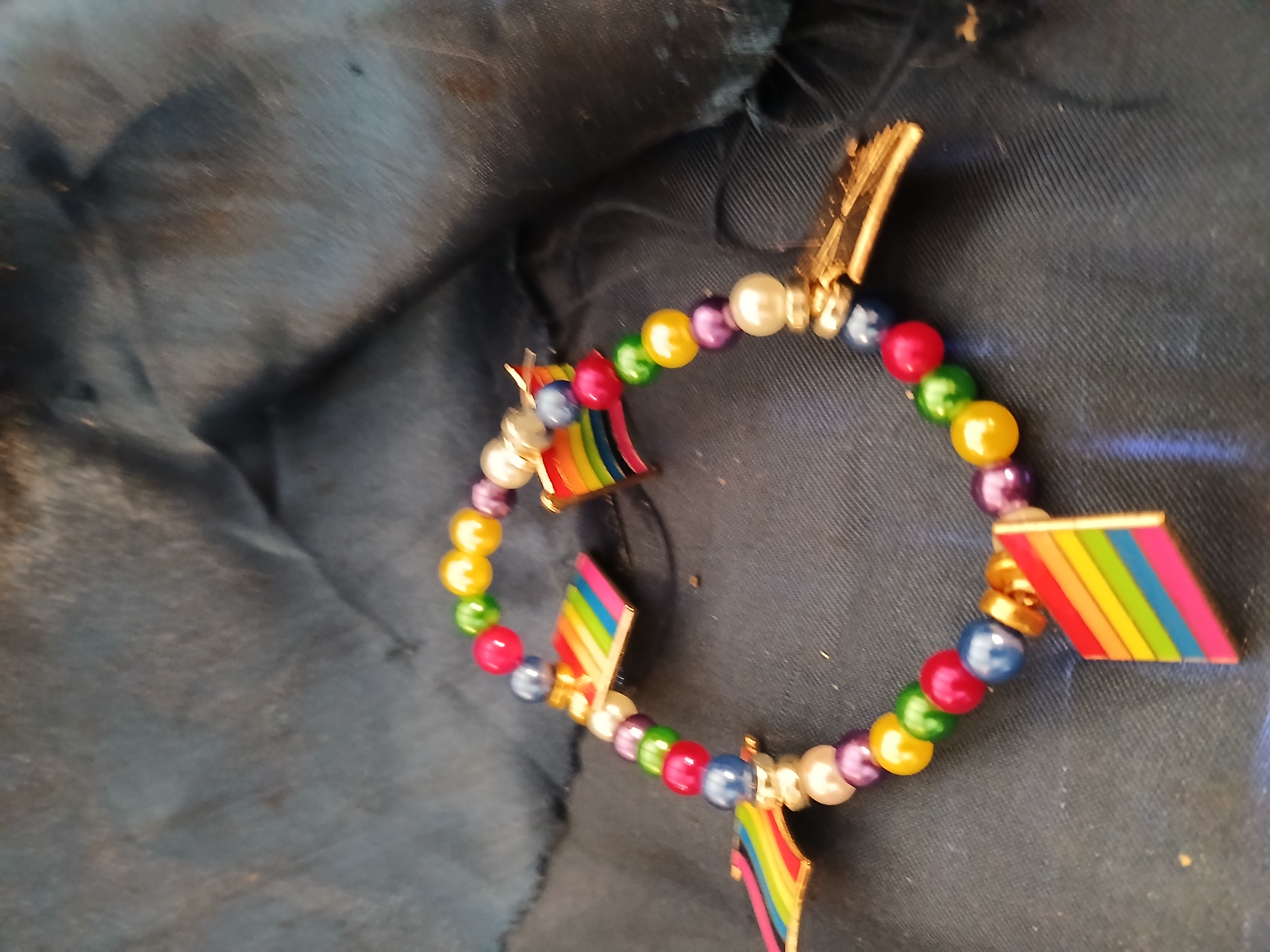 Multicolor pearl beads with rainbow flag charms
