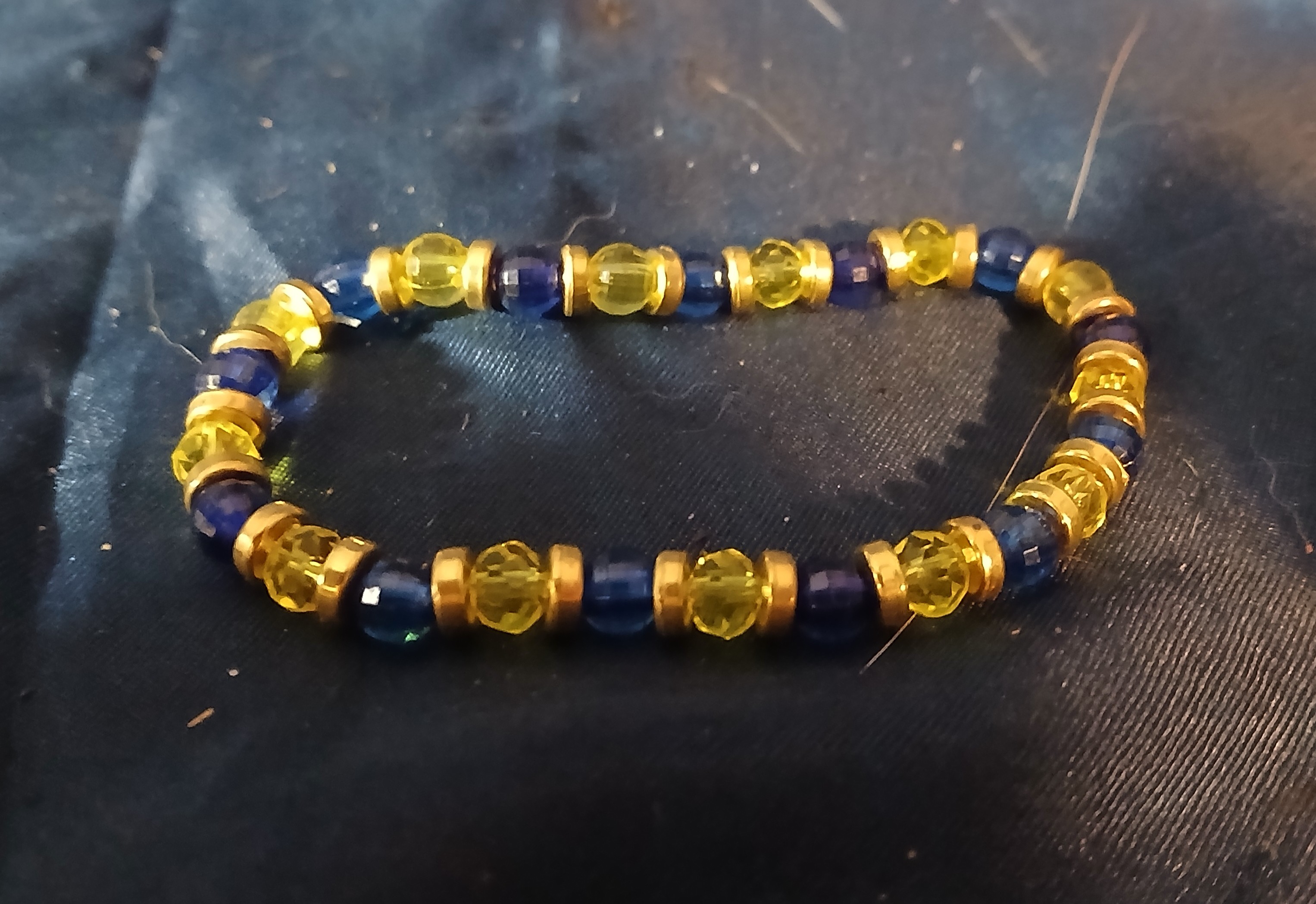 Shades of dark blue and yellow provide a lovely contrast in this bracelet.