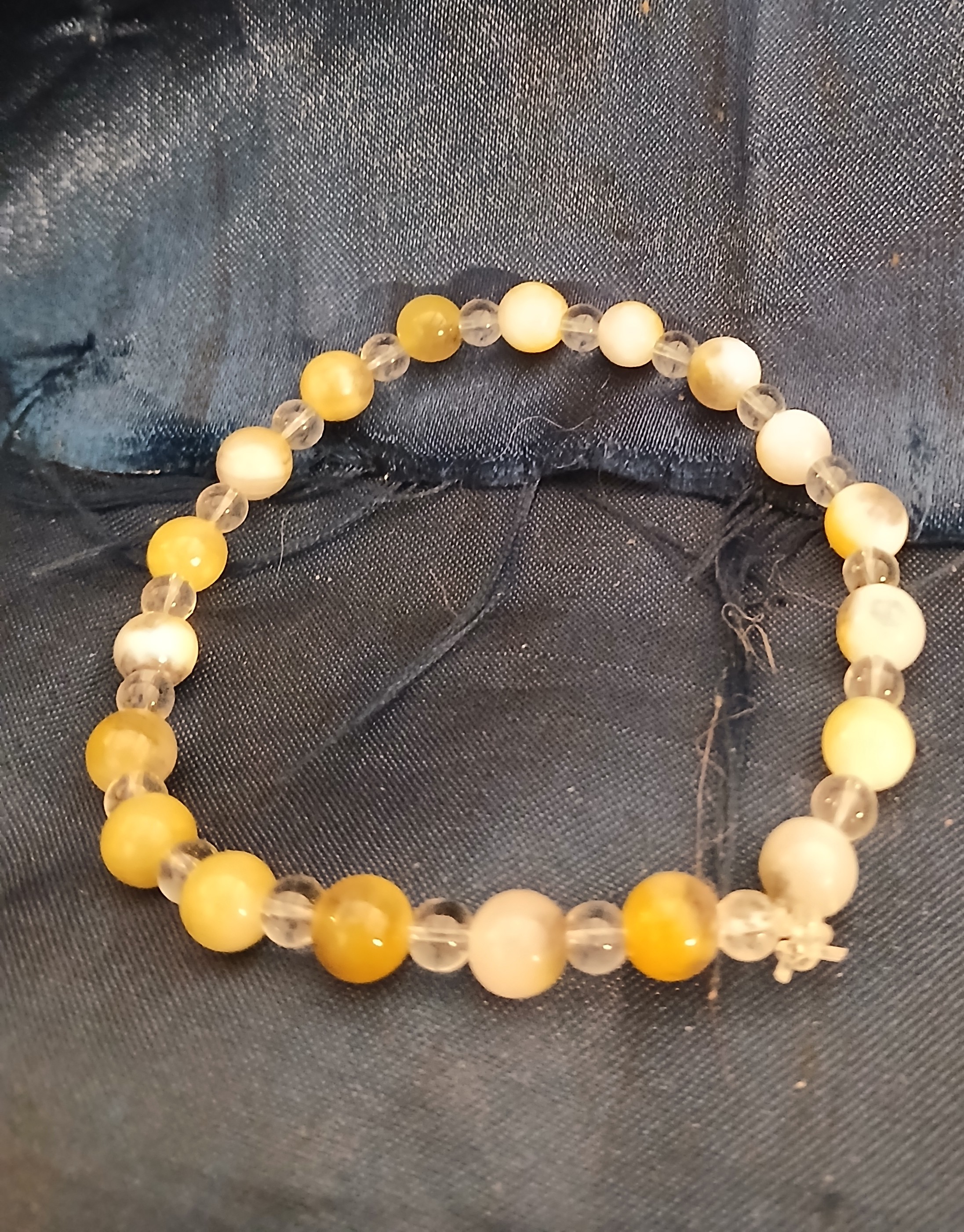 Yellow, White and black colored jade beads with smaller quartz beads as spacers