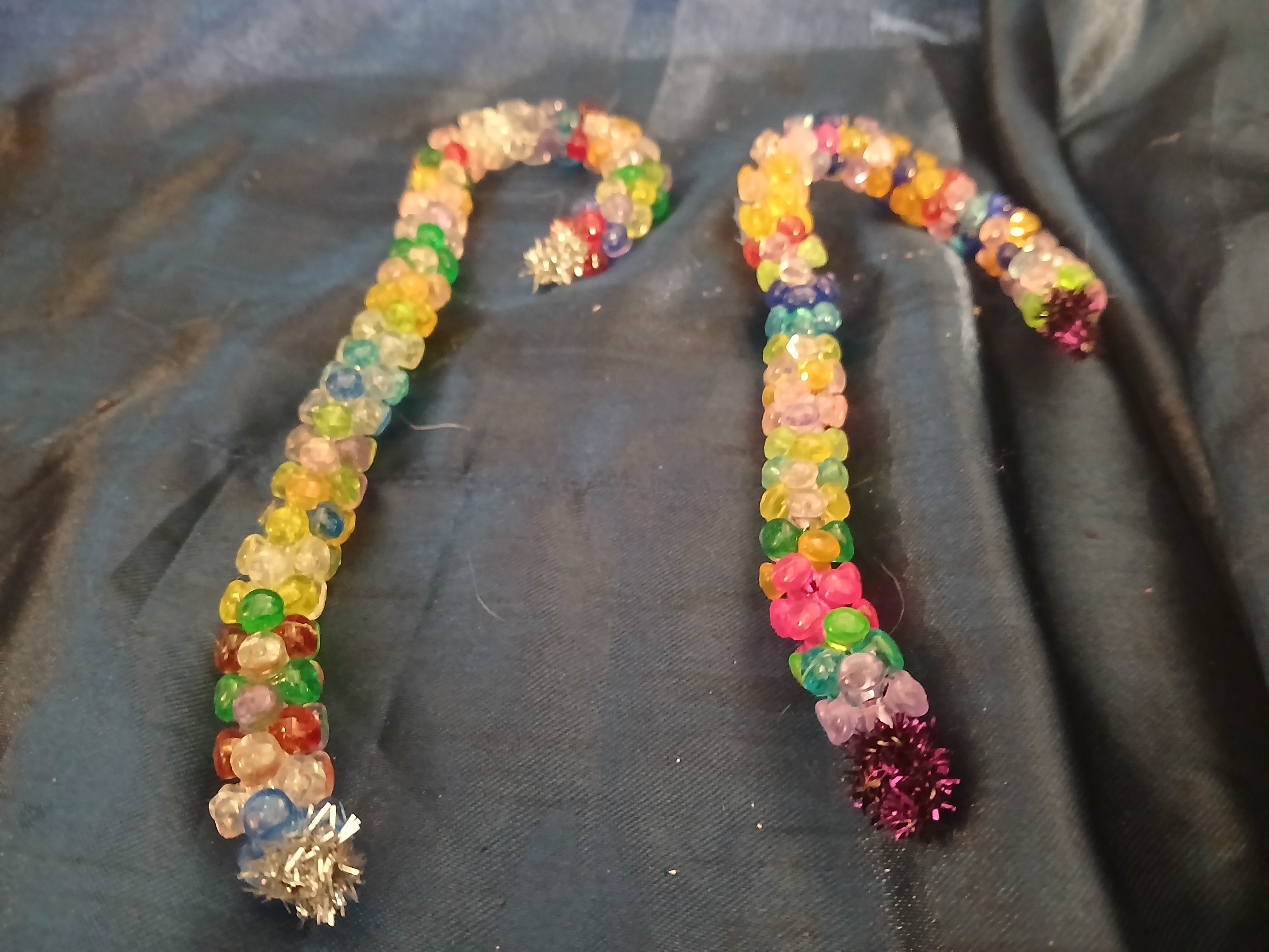 full sized candy canes made with triangle shaped beads. Come in sets of two.